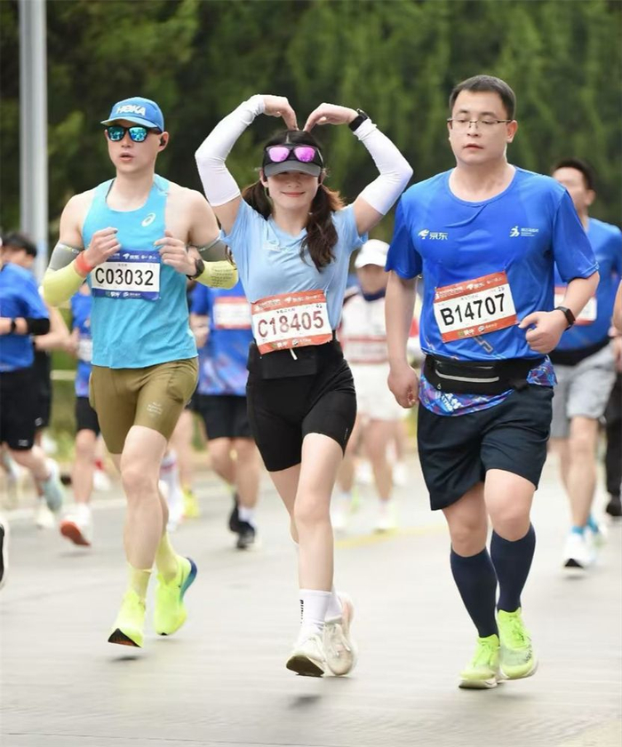 2024年春天,周娇在一个跑步群里看到大家聊迁马,有人说赛道风景好,有人说跑完特别有成就感,还有人分享自己的训练日常。“我之前连‘半马’‘全马’都分不清,随口问了句自己能报名吗,没想到大家都鼓励我试试。”周娇笑着说,后来她报名了“半马”,还真中了签。
